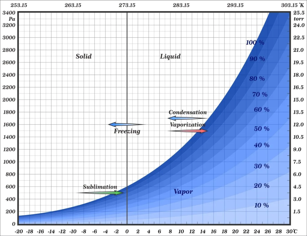 | पूर्ण दबाव (किलोग्राम प्रति वर्ग सेमी) | संतृप्ति तापमान (°C) | पूर्ण दबाव (किलोग्राम प्रति वर्ग सेमी) | संतृप्ति तापमान (°C) |